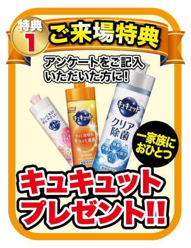ご来場いただきアンケートいただいたお客様にキュキュットをプレゼント!