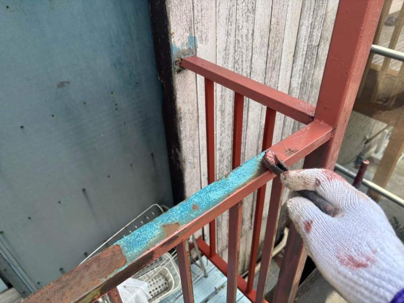 その後、錆止め入りの下塗り材を塗布し、錆の侵攻を抑えます